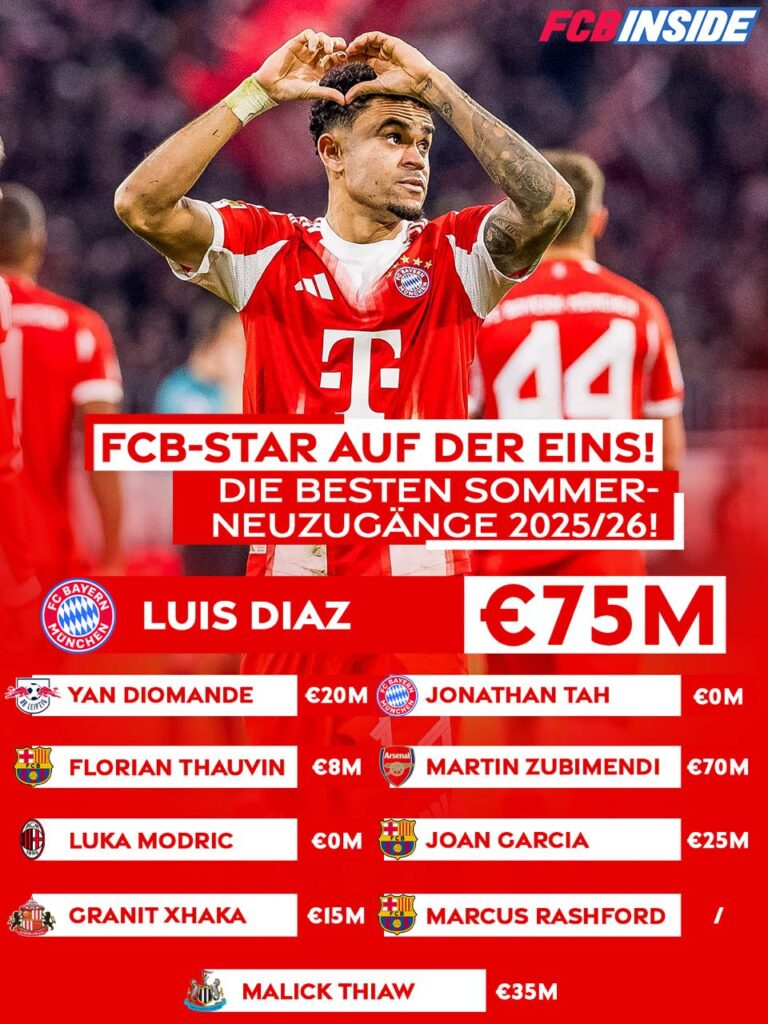 Winger Luis Díaz has impressed across the board at FC Bayern and has now been named the best new summer signing of 2025